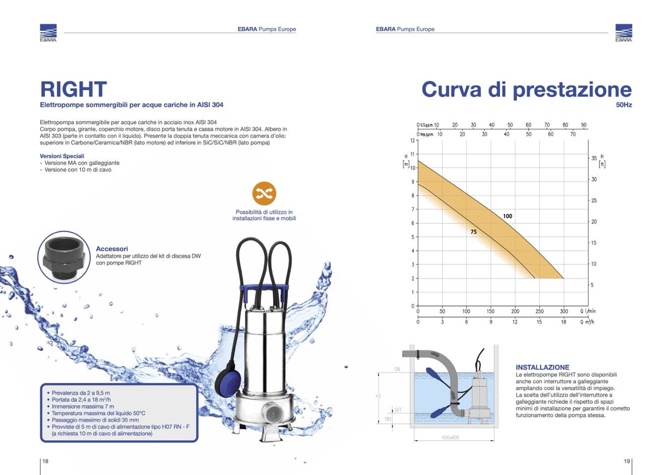 Elettropompa sommergibile per acque cariche in acciaio inox AISI 304