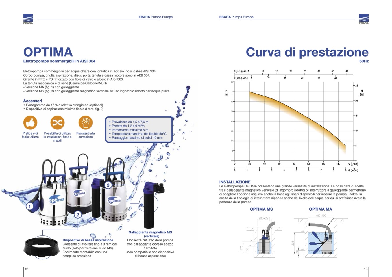 Le elettropompe OPTIMA presentano una grande versatilità di installazione. La possibilità di scelta