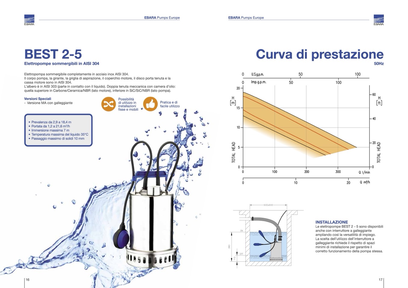 Elettropompa sommergibile completamente in acciaio inox AISI 304.