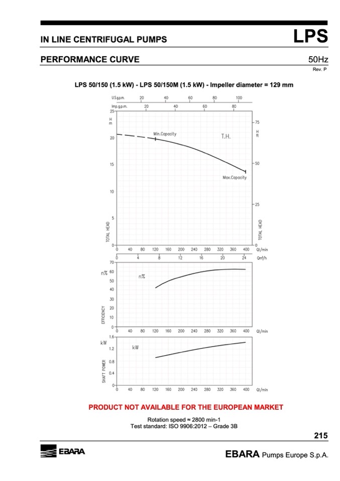 LPS 50/150 (1.5 kW) - LPS 50/150M (1.5 kW) - Impeller diameter = 129 mm