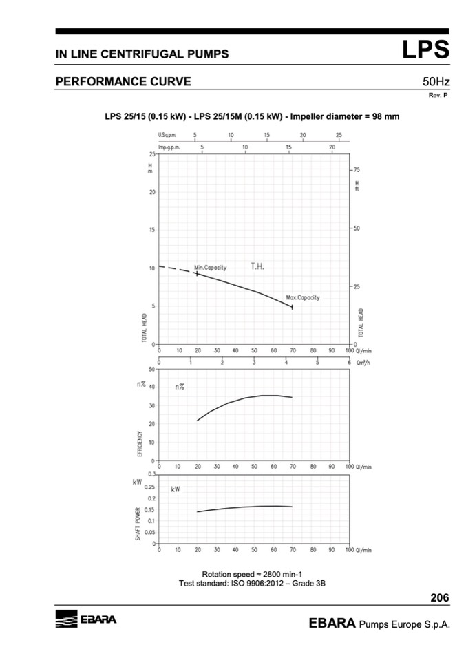 LPS 25/15 (0.15 kW) - LPS 25/15M (0.15 kW) - Impeller diameter = 98 mm