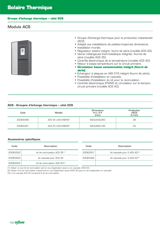 (3) Le kit cascade ACS 40 comprend le kit de recirculation.