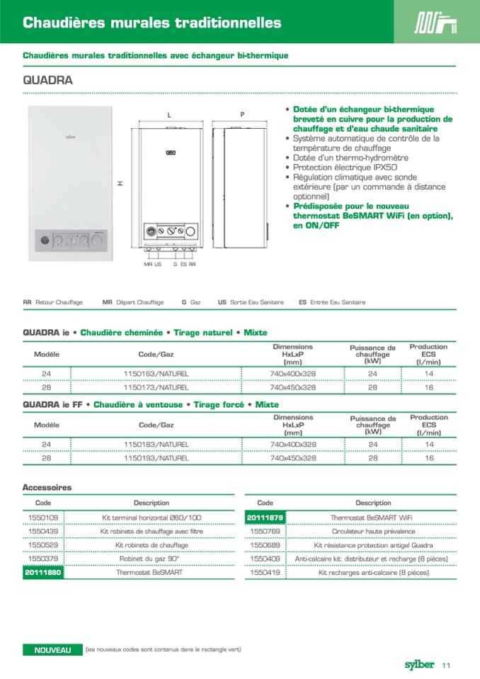 ères murales traditionnelles avec échangeur bi-thermique
