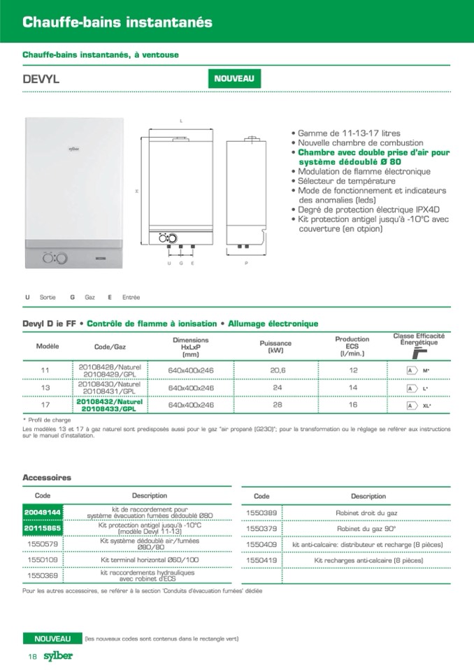 Chauffe-bains instantanés, à ventouse
