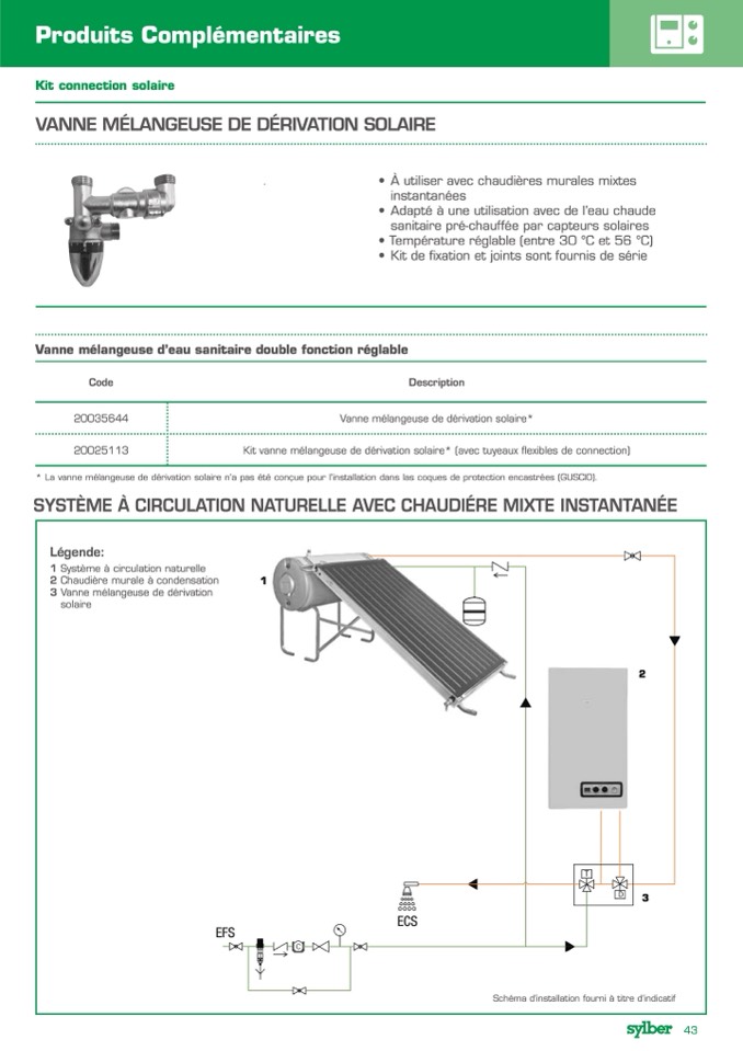 * La vanne mélangeuse de dérivation solaire n’a pas été conçue pour l’installation dans las coques de protection encastrées (GUSCIO).