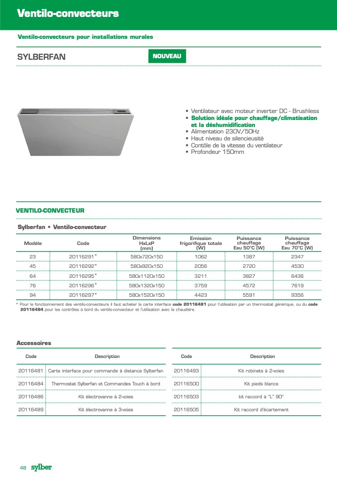 20116484 pour les contrôles à bord du ventilo-convecteur et l’utilisation avec la chaudière.