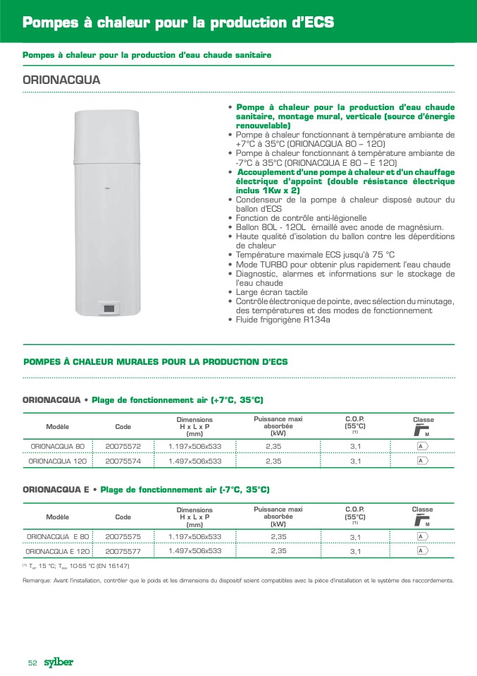 -7°C à 35°C (ORIONACQUA E 80 – E 120)
