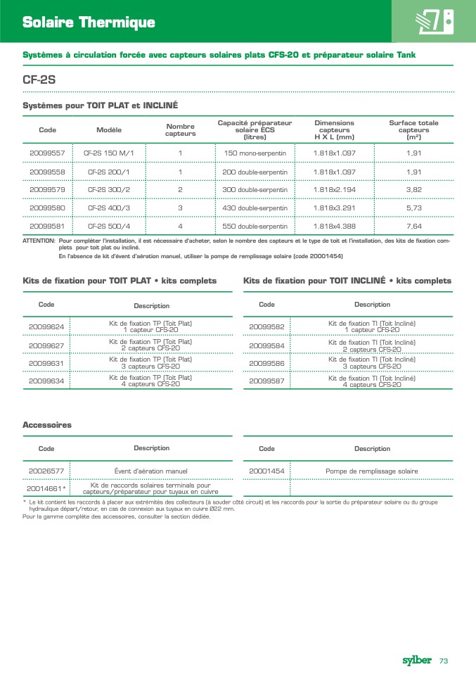 Systèmes à circulation forcée avec capteurs solaires plats CFS-20 et préparateur solaire Tank