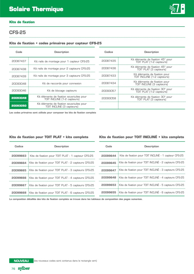 Kits de fixation pour TOIT INCLINÉ - 1 capteur CFS-25