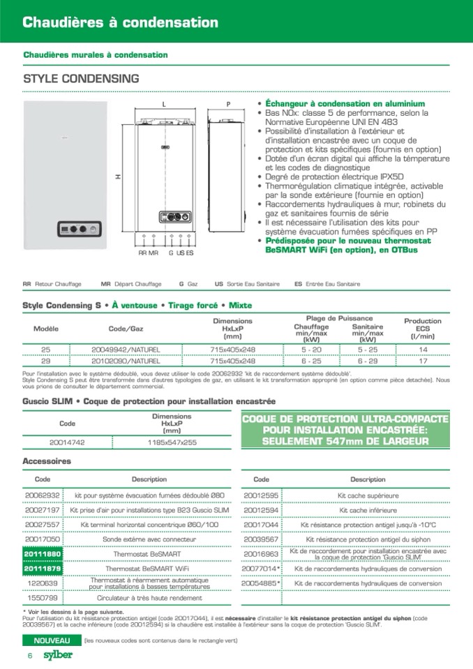Style Condensing S peut être transformée dans d’autres typologies de gaz, en utilisant le kit transformation approprié (en option comme pièce detachée). Nous