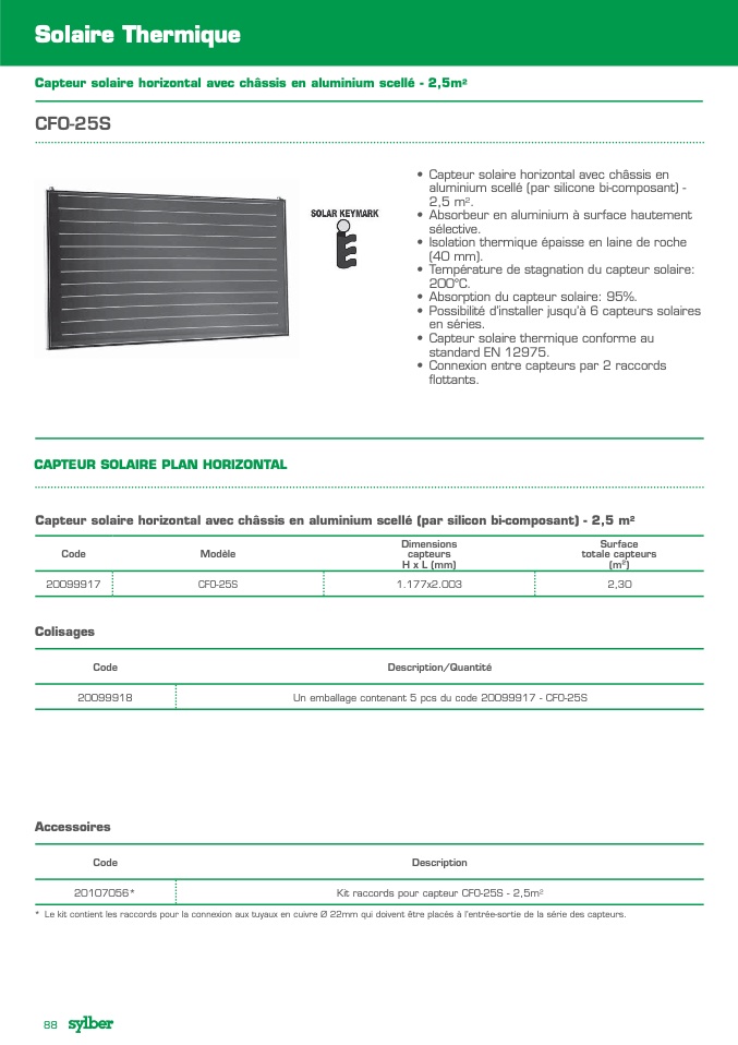 CAPTEUR SOLAIRE PLAN HORIZONTAL