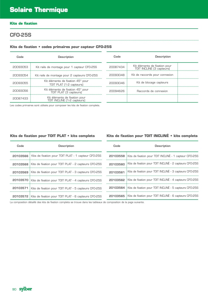 Kits de fixation pour TOIT INCLINÉ - 6 capteurs CFO-25S