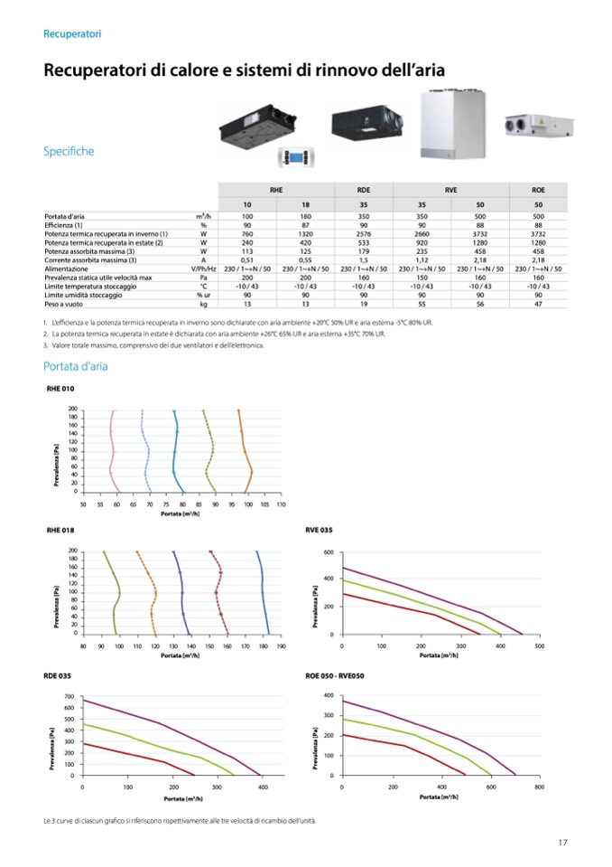 1. L’efficienza e la potenza termica recuperata in inverno sono dichiarate con aria ambiente +20°C 50% UR e aria esterna -5°C 80% UR.