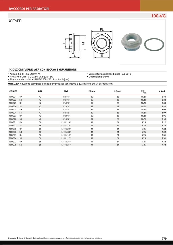 RIDUZIONE VERNICIATA CON INCAVO E GUARNIZIONE