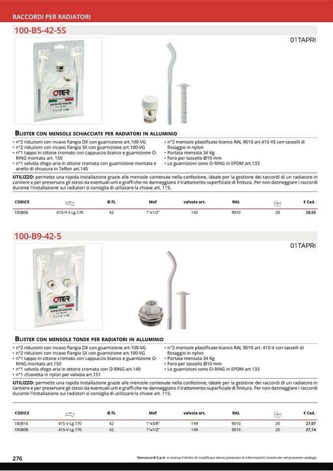 BLISTER CON MENSOLE TONDE PER RADIATORI IN ALLUMINIO
