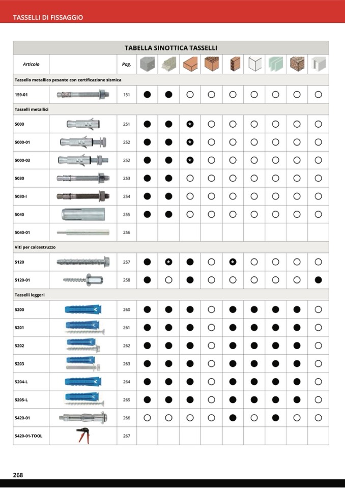 TABELLA SINOTTICA TASSELLI