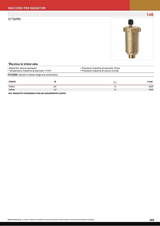 VALVOLA DI SFOGO ARIA