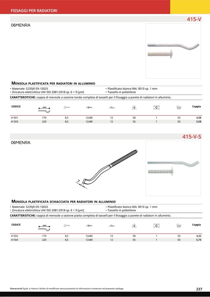 MENSOLA PLASTIFICATA SCHIACCIATA PER RADIATORI IN ALLUMINIO