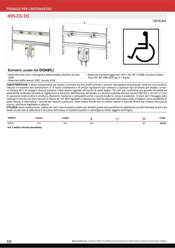 SUPPORTO LAVABO PER DISABILI