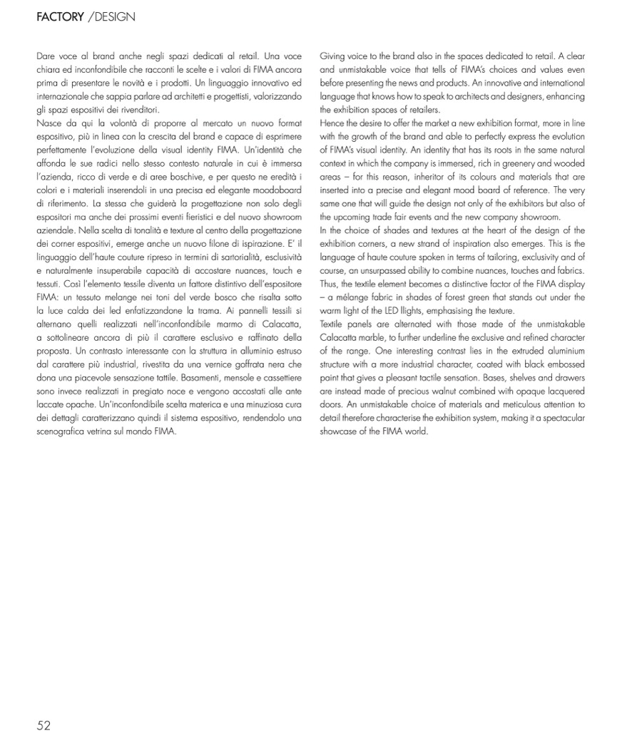and unmistakable voice that tells of FIMA’s choices and values even