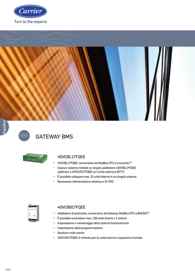 • 40VCBL17FQEE, conversione da ModBus RTU a Lonworks