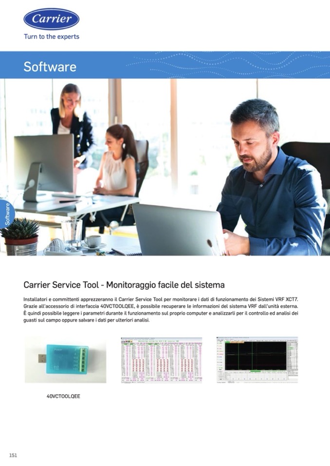 Installatori e committenti apprezzeranno il Carrier Service Tool per monitorare i dati di funzionamento dei Sistemi VRF XCT7.