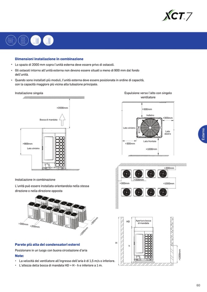 Lo spazio di 2000 mm sopra l'unità esterna deve essere privo di ostacoli.