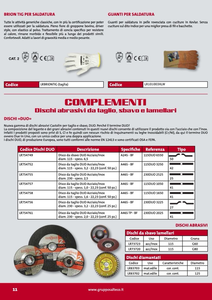 I dischi DUO, di produzione Europea, sono tutti conformi alle norme EN 12413 e sono certificati OSA e FEPA.