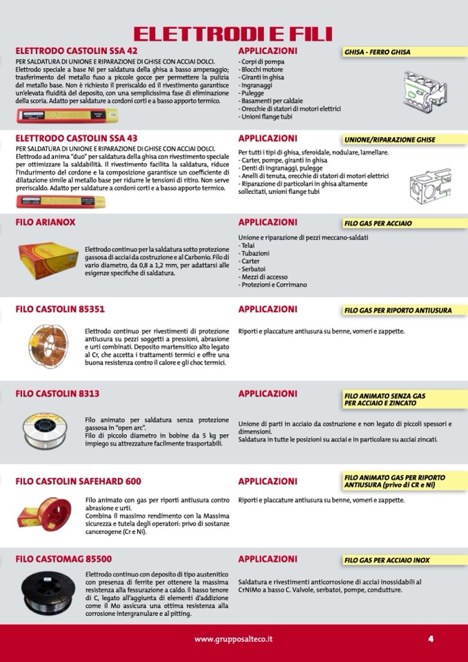 PER SALDATURA DI UNIONE E RIPARAZIONE DI GHISE CON ACCIAI DOLCI.