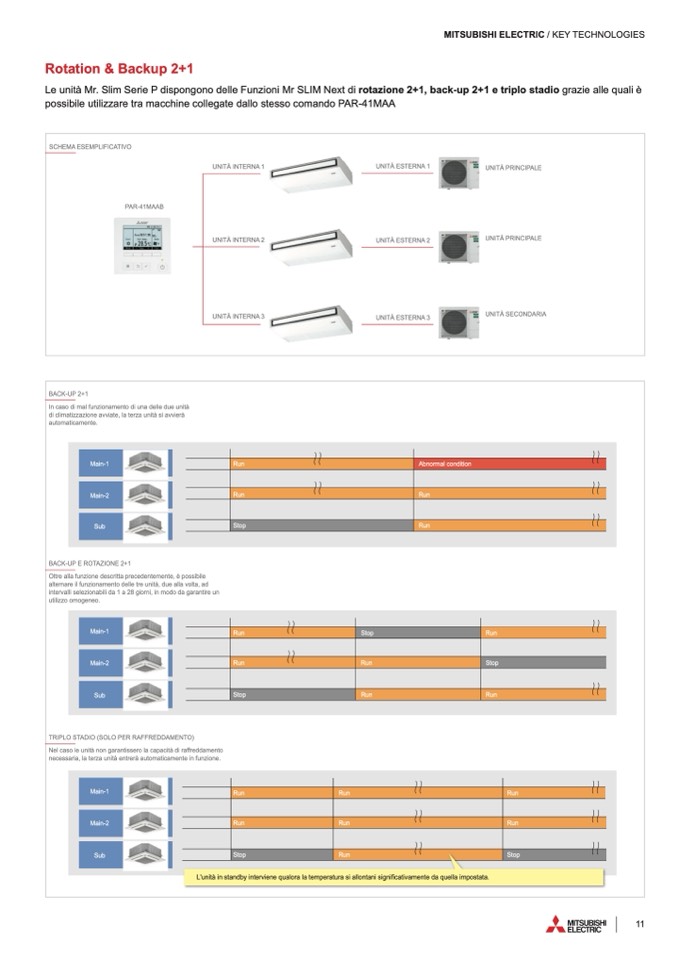 Le unità Mr. Slim Serie P dispongono delle Funzioni Mr SLIM Next di rotazione 2+1, back-up 2+1 e triplo stadio grazie alle quali è