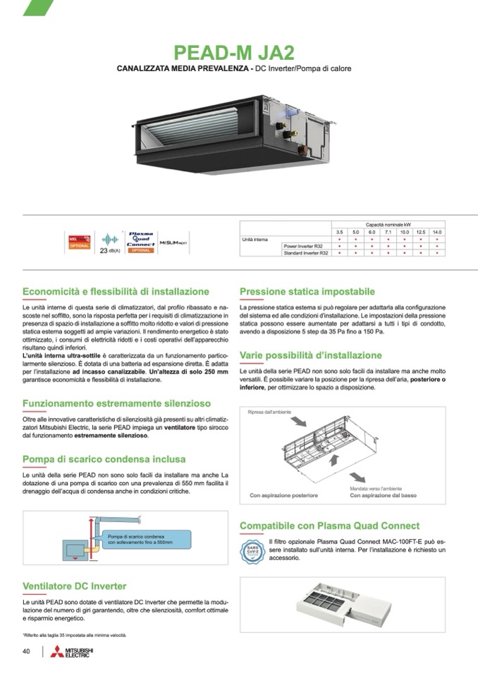 zatori Mitsubishi Electric, la serie PEAD impiega un ventilatore tipo sirocco