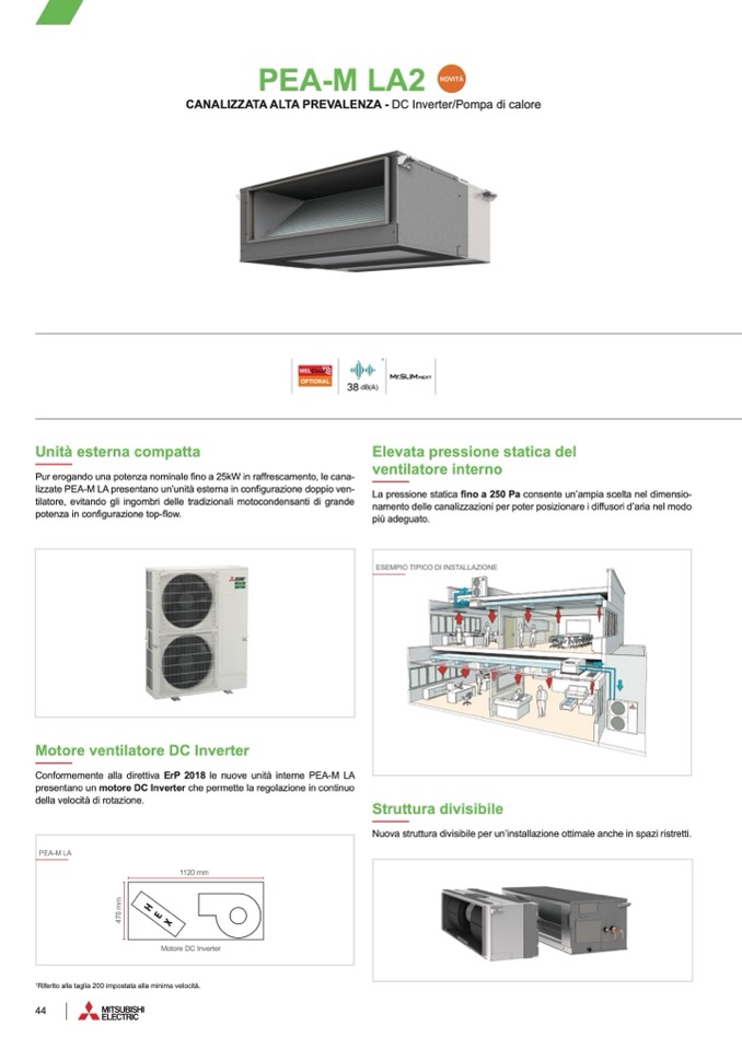 Conformemente alla direttiva ErP 2018 le nuove unità interne PEA-M LA