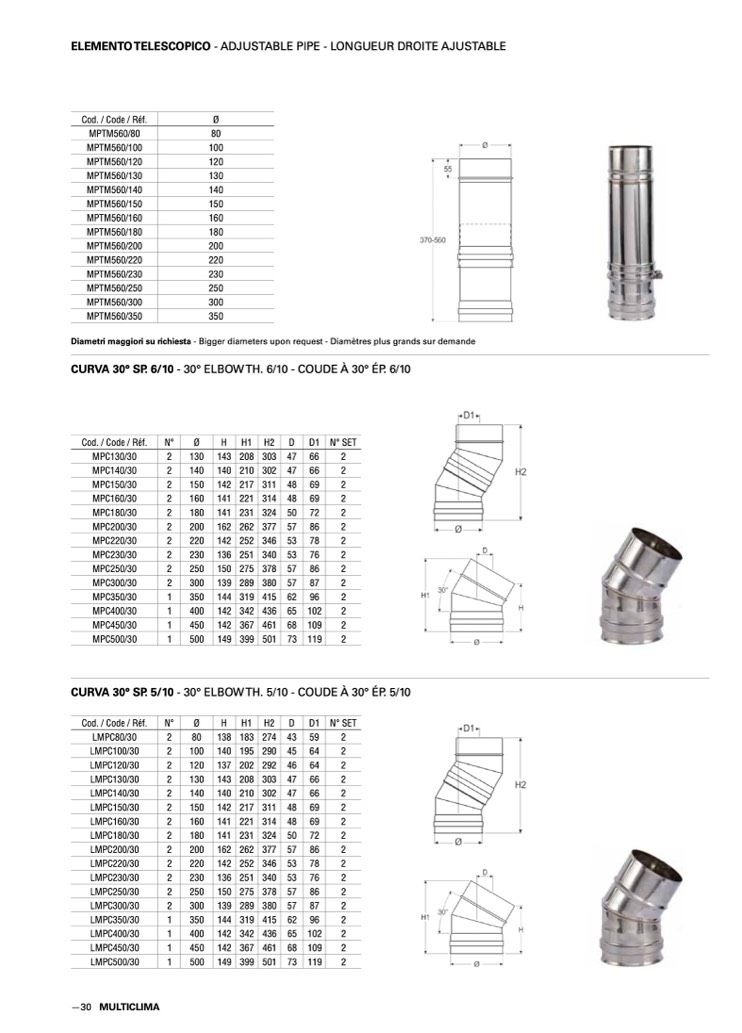 CURVA 30° SP. 5/10 - 30° ELBOW TH. 5/10 - COUDE À 30° ÉP. 5/10