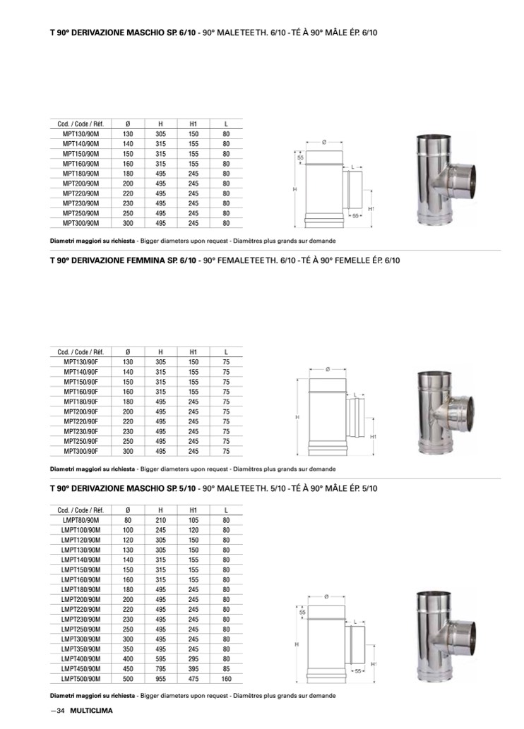 Diametri maggiori su richiesta - Bigger diameters upon request - Diamètres plus grands sur demande