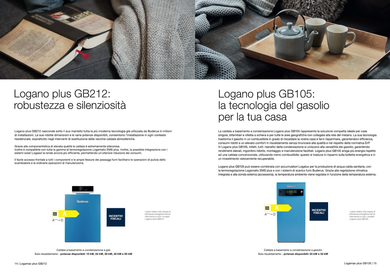 rendimenti elevati, ingombro ridotto, montaggio e manutenzione facilitati. Logano plus GB105 eroga più energia rispetto