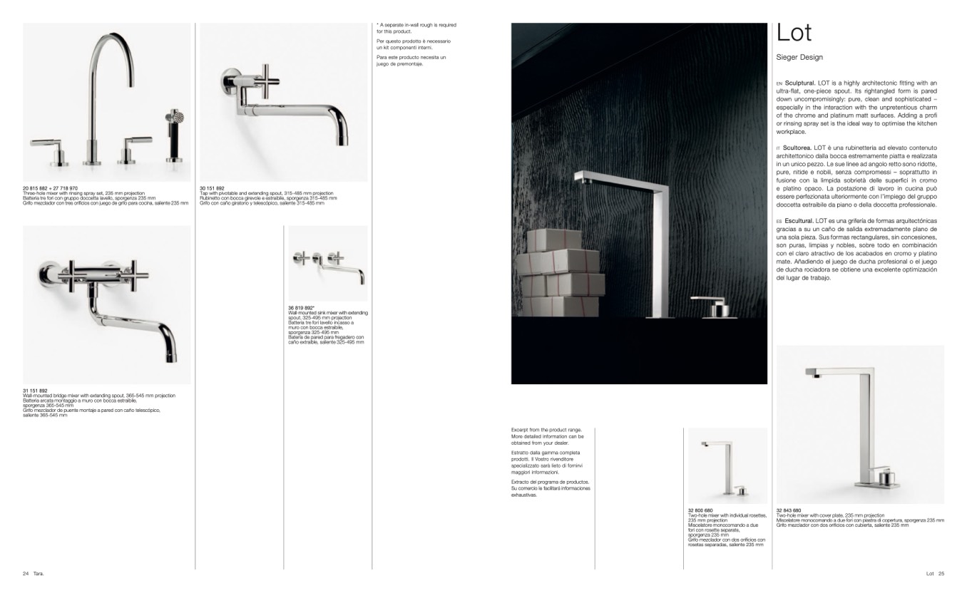 ultra-flat, one-piece spout. Its rightangled form is pared