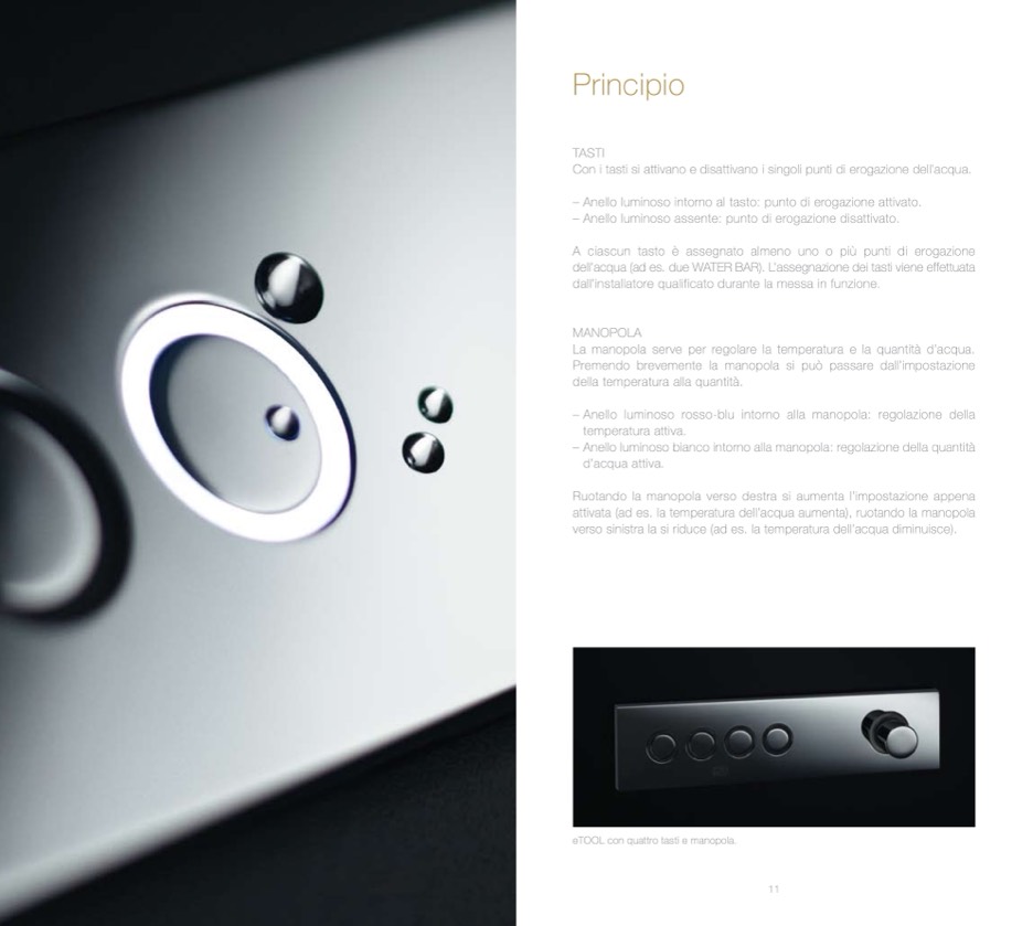 – Anello luminoso intorno al tasto: punto di erogazione attivato.
