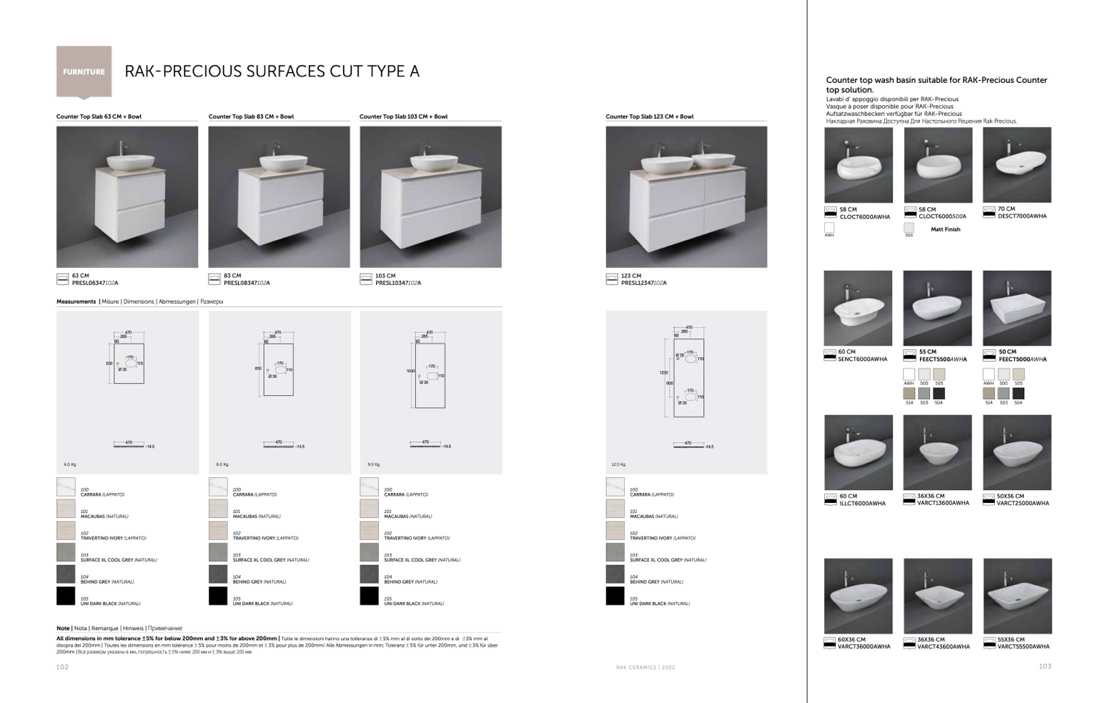 Lavabi d’ appoggio disponibili per RAK-Precious