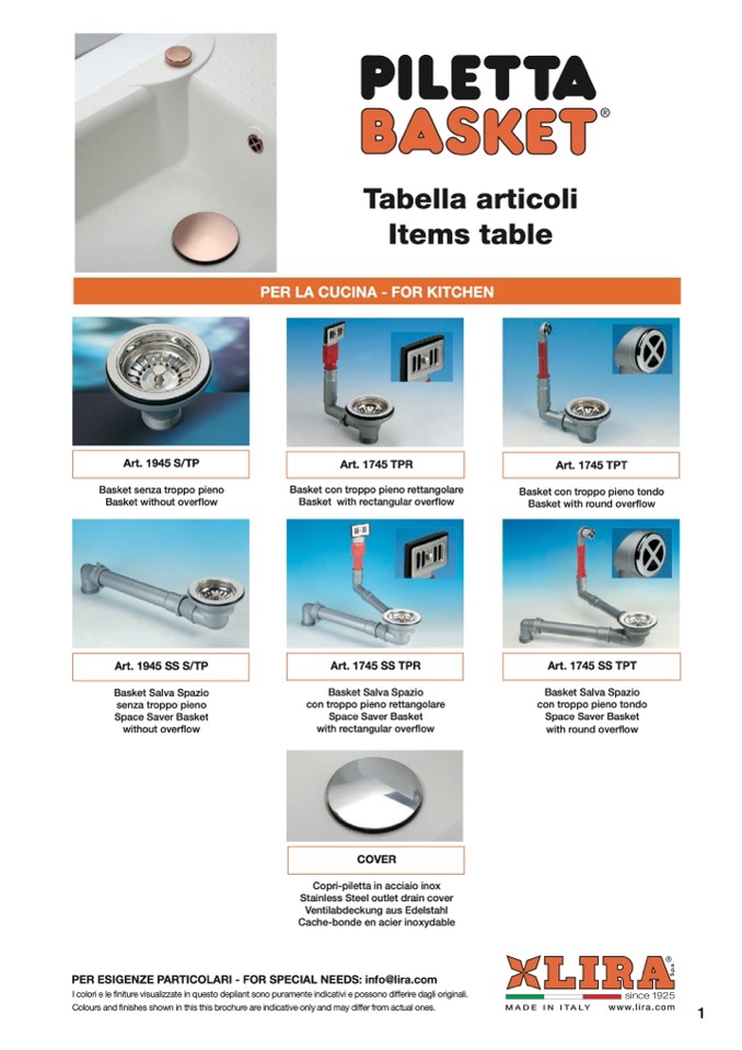 PER ESIGENZE PARTICOLARI - FOR SPECIAL NEEDS: info@lira.com