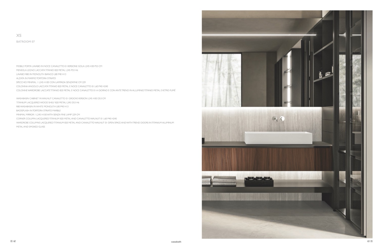 WASHBASIN CABINET IN WALNUT CANALETTO 01 GROOVE VERSION L245 H30 D53 CM