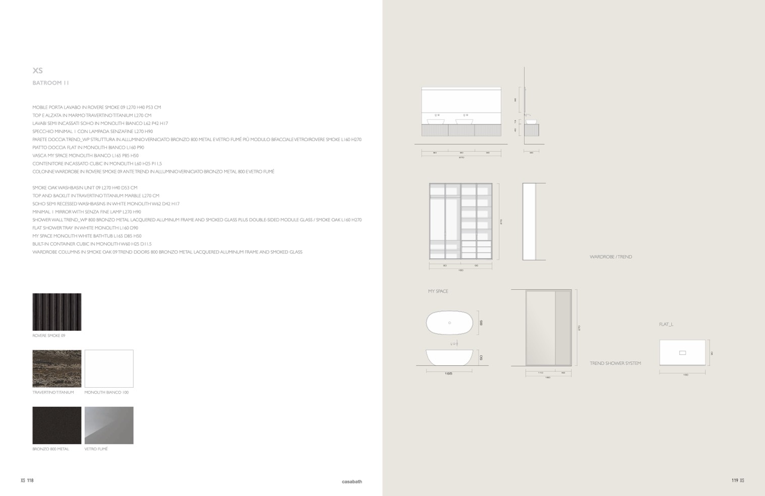 SHOWER WALL TREND_WP 800 BRONZO METAL LACQUERED ALUMINUM FRAME AND SMOKED GLASS PLUS DOUBLE-SIDED MODULE GLASS / SMOKE OAK L160 H270