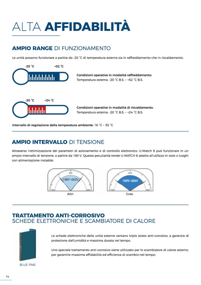 Le unità possono funzionare a partire da -20 °C di temperatura esterna sia in raffreddamento che in riscaldamento.