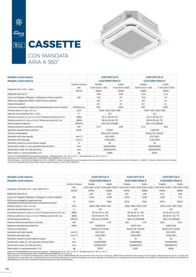*Dati dichiarati in conformità ai Regolamenti UE n. 206/2012, relativo alle specifiche per la progettazione ecocompatibile dei condizionatori d’aria e dei ventilatori e n. 626/2011, relativo all’etichettatura indicante