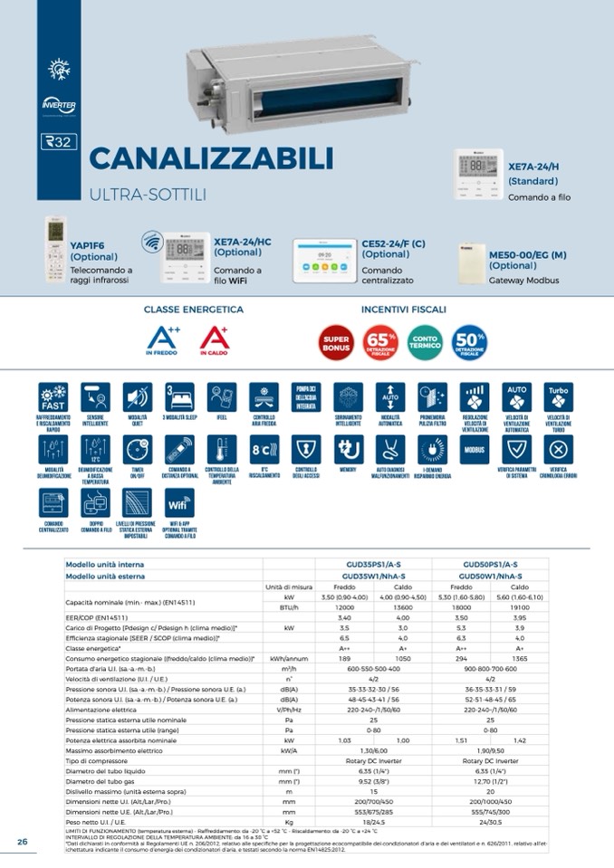 LIMITI DI FUNZIONAMENTO (temperatura esterna) - Raffreddamento: da -20 °C a +52 °C - Riscaldamento: da -20 °C a +24 °C