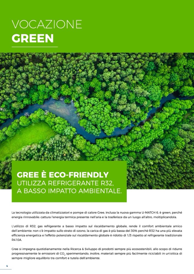 La tecnologia utilizzata da climatizzatori e pompe di calore Gree, inclusa la nuova gamma U-MATCH 6, è green, perché