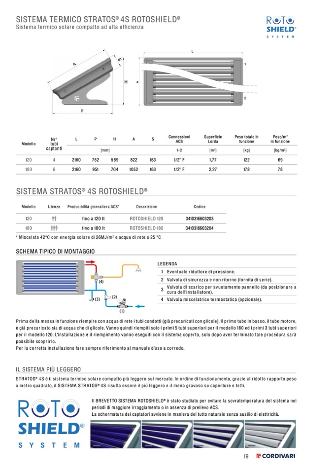 4S è il sistema termico solare compatto più leggero sul mercato. In ordine di funzionamento, grazie al ridotto rapporto peso