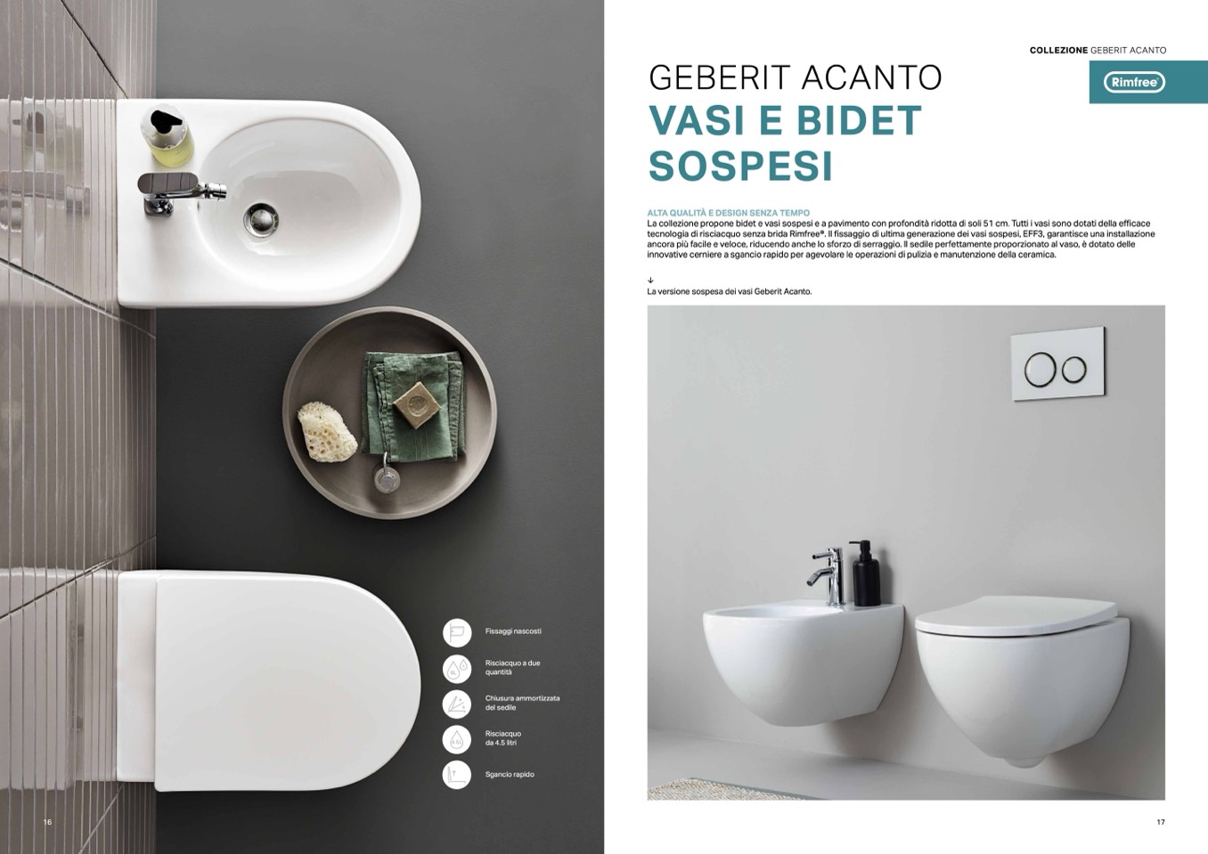 La collezione propone bidet e vasi sospesi e a pavimento con profondità ridotta di soli 51 cm. Tutti i vasi sono dotati della efficace