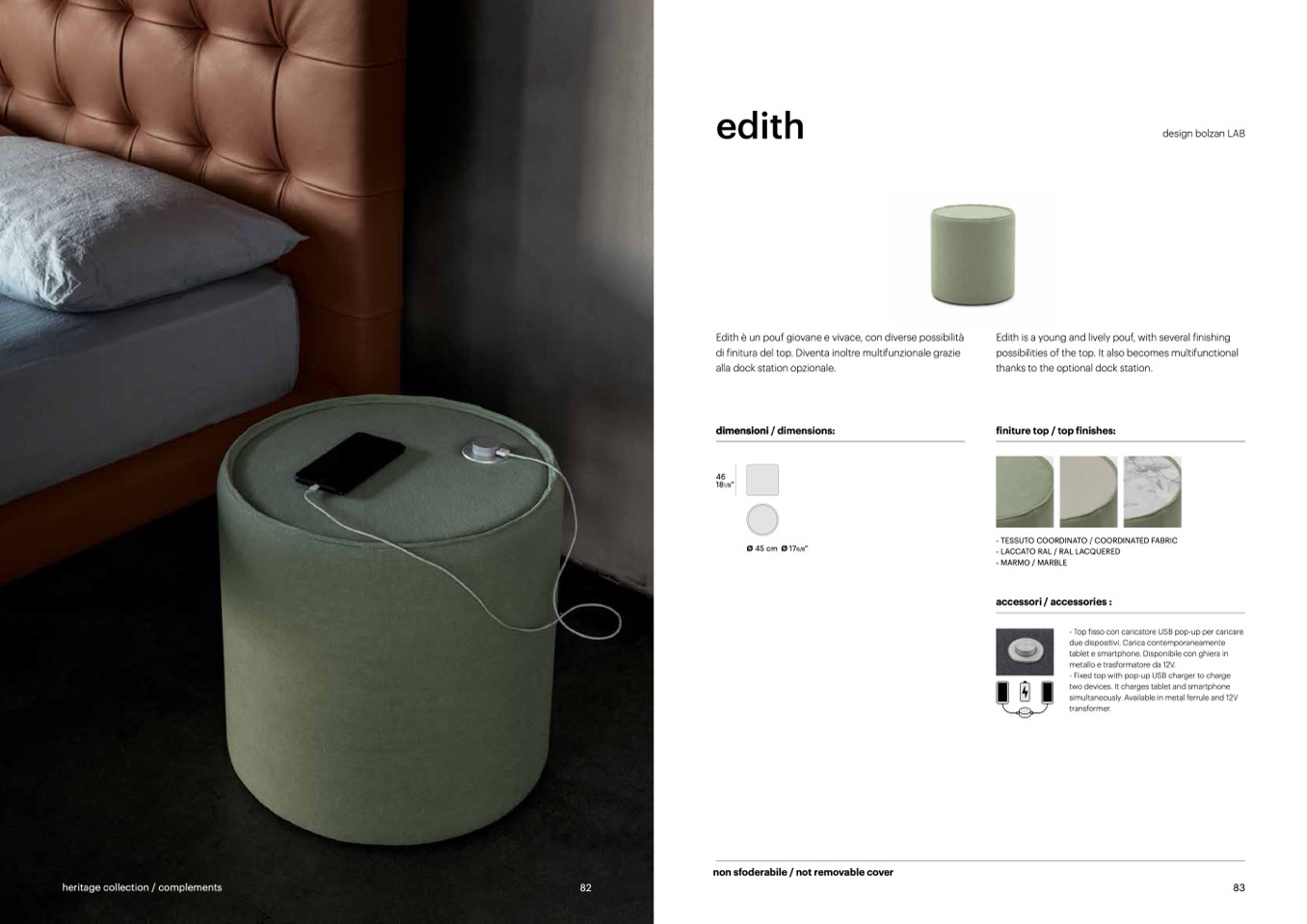 Edith is a young and lively pouf, with several finishing