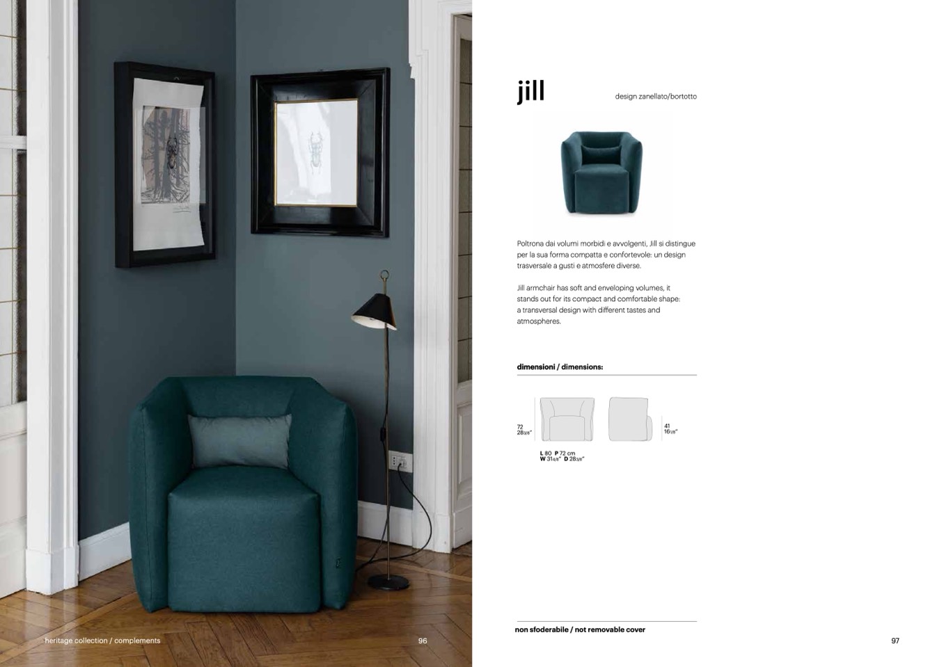 Poltrona dai volumi morbidi e avvolgenti, Jill si distingue