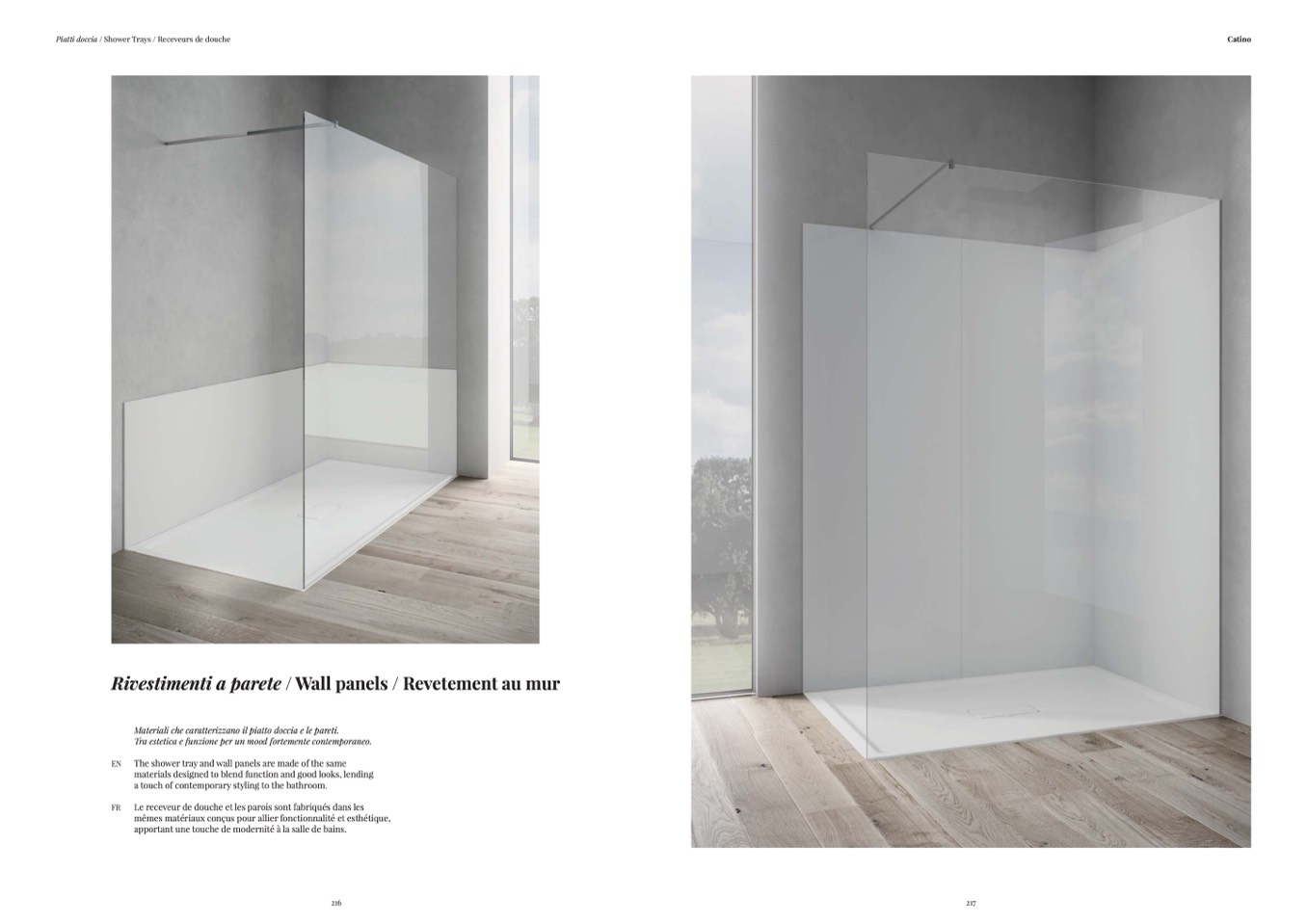 Materiali che caratterizzano il piatto doccia e le pareti.